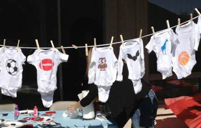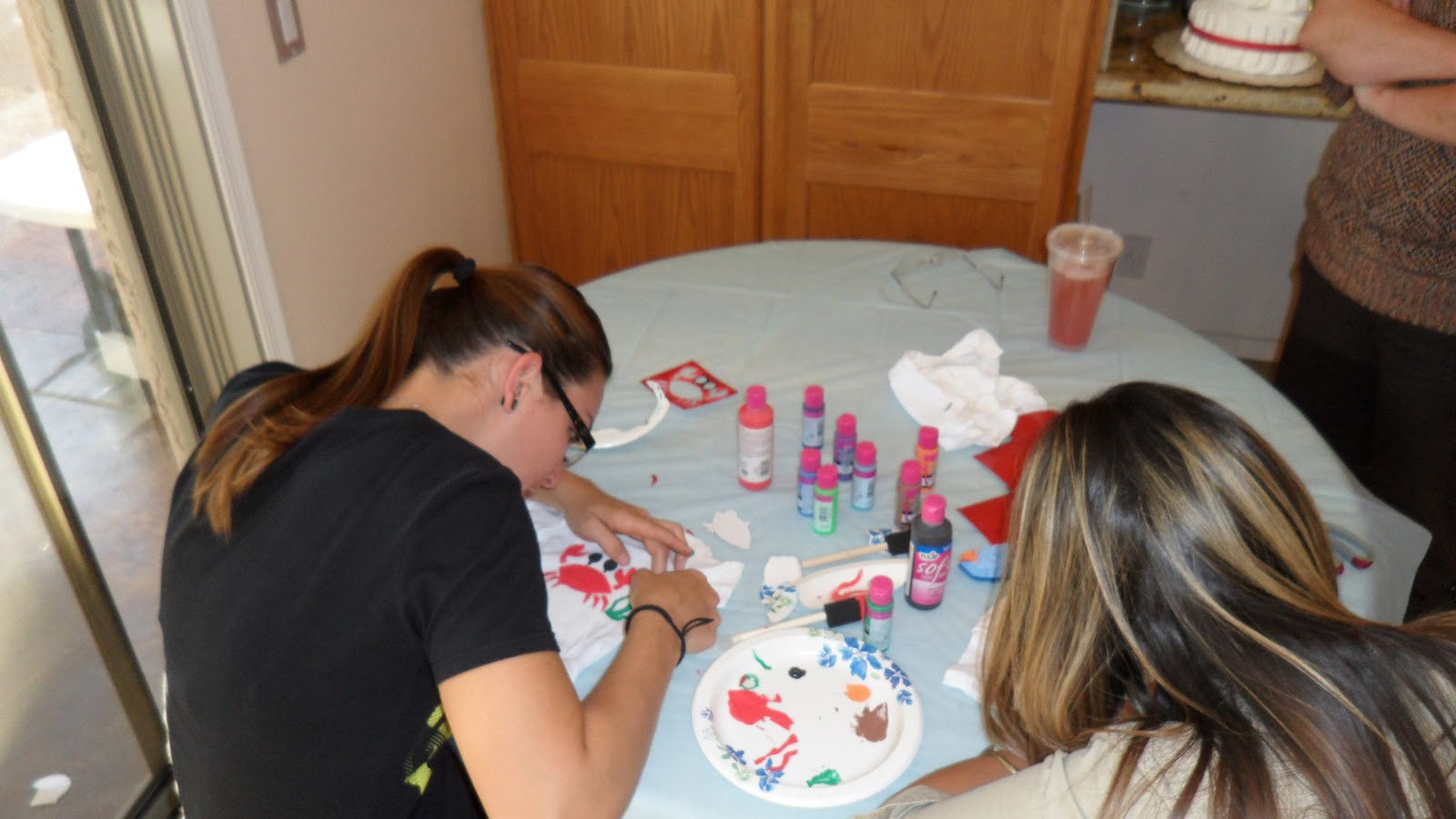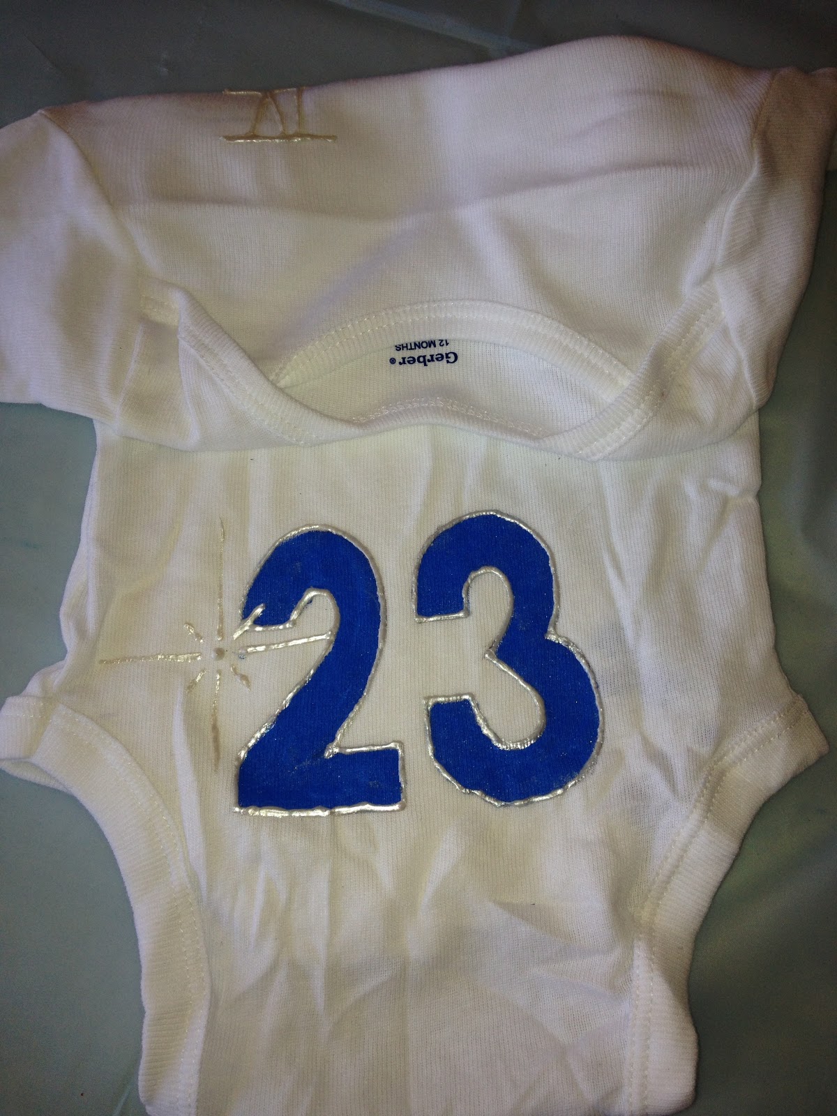 I wish I had taken a few more pictures. Amanda and her mom did such a great job decorating, each of the tables had different kinds of sports balls on them which of course she left for us to keep for Baby J. She ordered food from Bucca di Beppo (yum) and I still have some leftover pasta! Also we had guests paint a onesie (or two) using a stencil. Which ended up not only being entertaining but left me with some really cute outfits for our lil man.