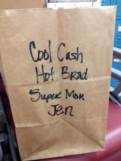 | Oh Megan! She’s a funny girl… personalizing our OG food bags. |