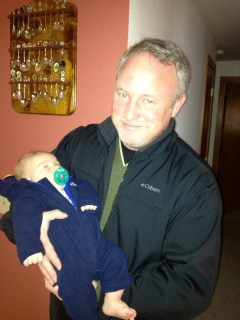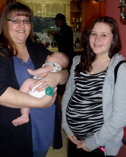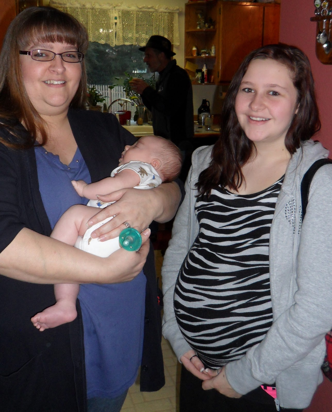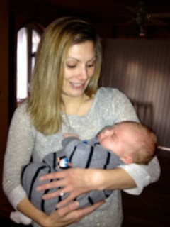 Here he is with Kelly (who was my baby sitter growing up) and her daughter Emily.
