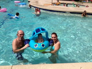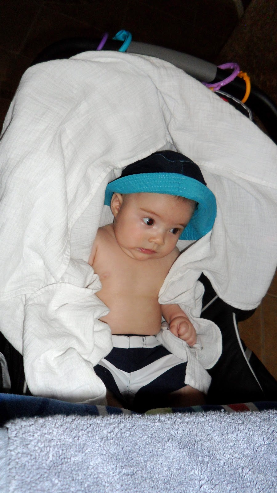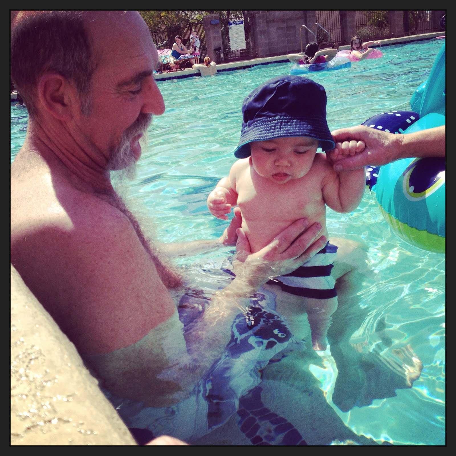 On Thursday after Mom & I did a little bit of shopping (mostly for Cash of course). We headed out to the pool. Cash’s first time was pretty entertaining. He can’t quite make up his mind how he feels about it. I think it was very overwhelming for him with all of the noise and how bright it was. Smart me forgot to grab his sunglasses (probably because they were stashed away for his Easter basket), so next time we venture out there I will be sure not to forget them. But, he was coated in sunscreen and had on a hat so I’d say he was protected.