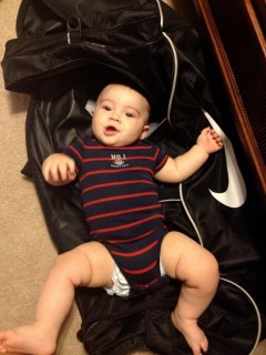 Clothing: Lil Man is getting close to being too long for 6 month clothes. And of course his chubbiness is still in full force! 🙂 I may pull out some 9 month stuff soon. Cause his pjs are getting a little tight.