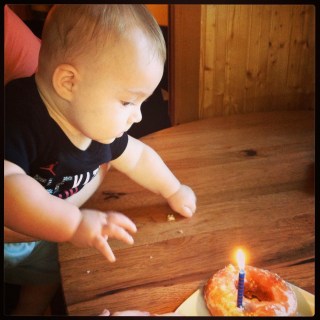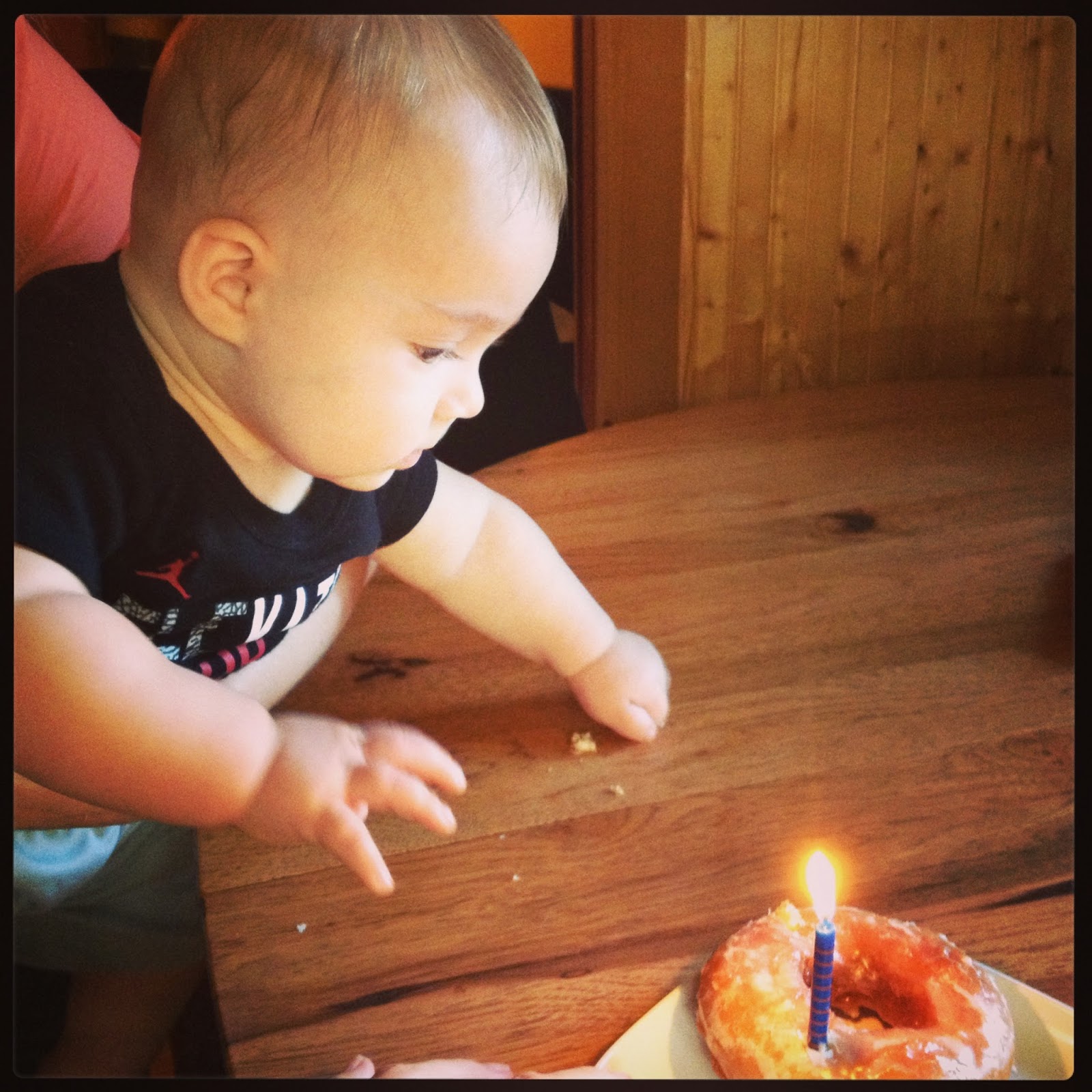 Cash poked the donut with his finger. And got just a little hint of the sugar. But he didn’t seem too impressed. Glad we can save that for his 1st Birthday!