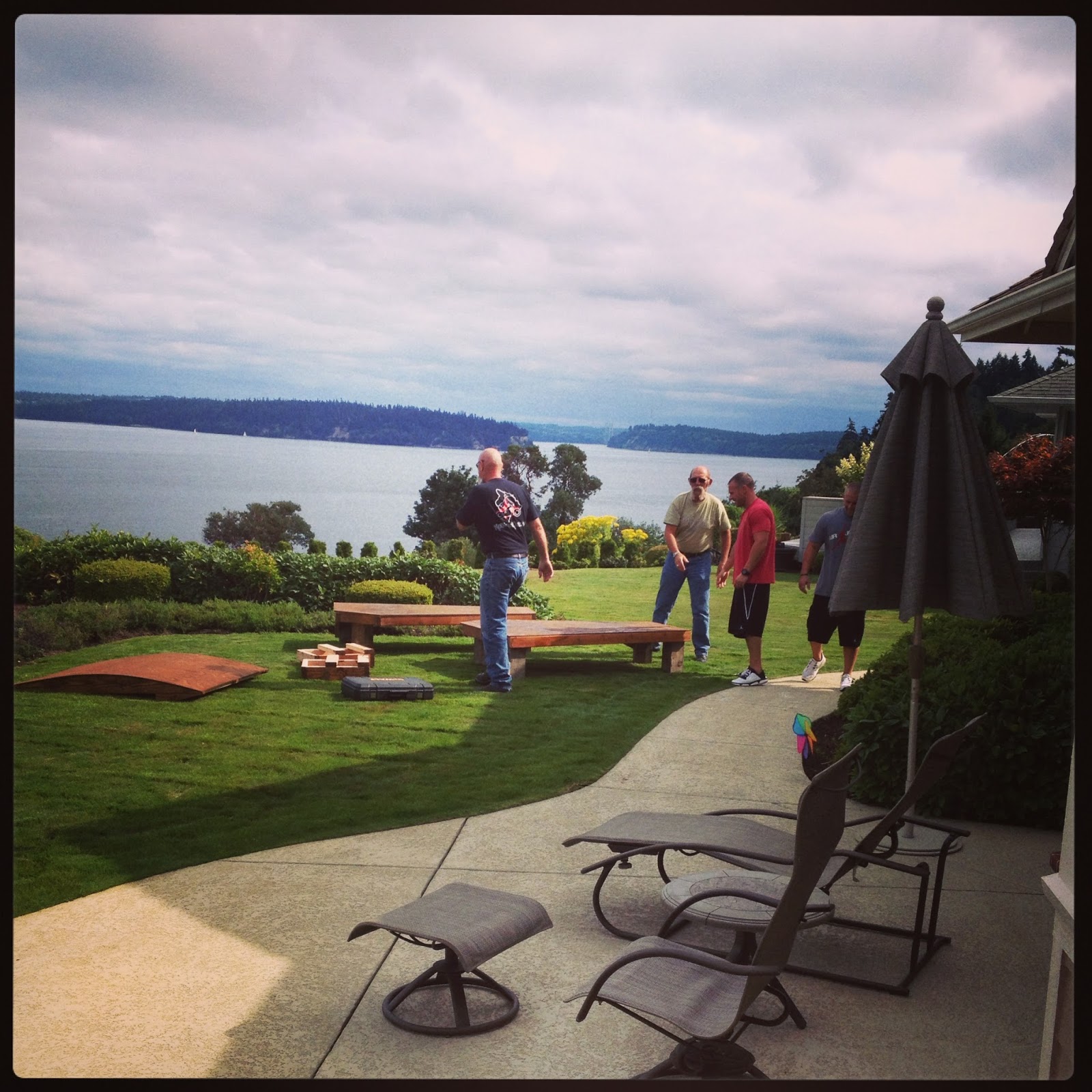 Our photographer is an old family friend. Lucky my parents know so many people… we’ve got some serious connections! woo woo. Jim does wedding photography as a side gig and his wife Kathy has been friends with my mom for 30-some years. So Jim & Kathy came out to Gig Harbor to see our wedding location and take a few engagement pics of us. It really turned into a family photo session… which is quite alright with us! As long as we get shots of us two on the big day, I’m good 🙂 I would love to post those but that will have to wait until we actually order them & I get permission from him of course! My only hope for our wedding pics is we get more emotion from both of us! Which I’m fully confident will happen cause we wont be standing waiting them most of the time.