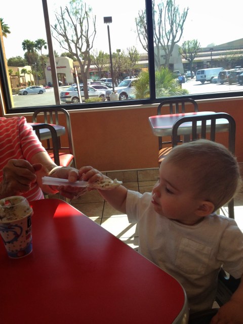 My grandma (mom’s mom) got the opportunity to ride down with her niece to Palm Springs and visit her brother while vacationing for a couple weeks. You see it’s been tough on her the last few months between her own health (88 year old) stuff and my grandpa’s countless doctors appointments. So a little trip to the sunshine and relaxing was just what she needed. And since she was only staying a 3.5 hour drive from us, we decided a road trip to visit was more than necessary. Turns out Brad wasn’t able to get away from work but Cash & I hoped in the car Monday morning and made the drive.