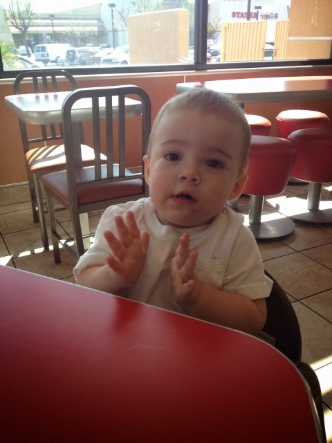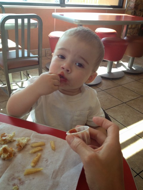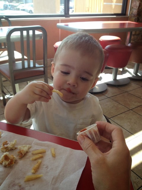 | his very first McDonalds trip… fish & french fries |