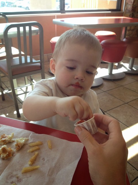 | and more ketchup after he sucked it off the fry lol |