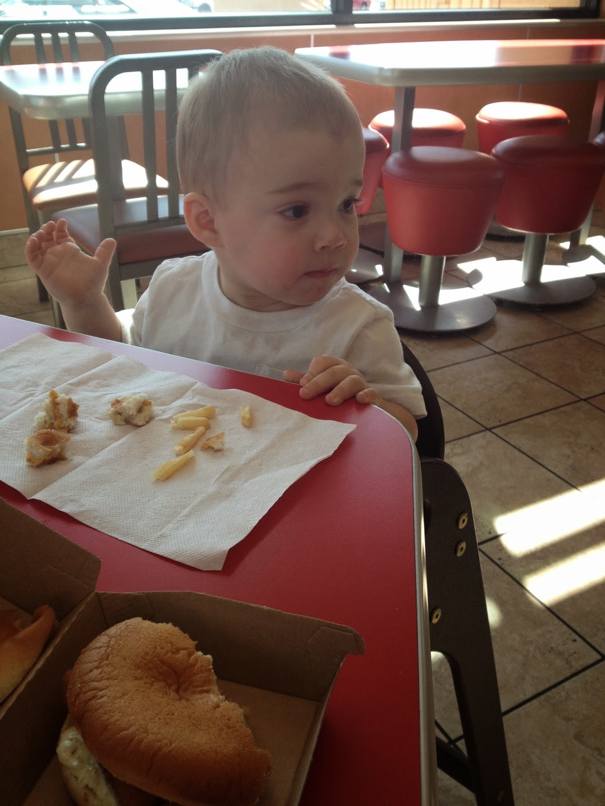 | his very first McDonalds trip… fish & french fries |