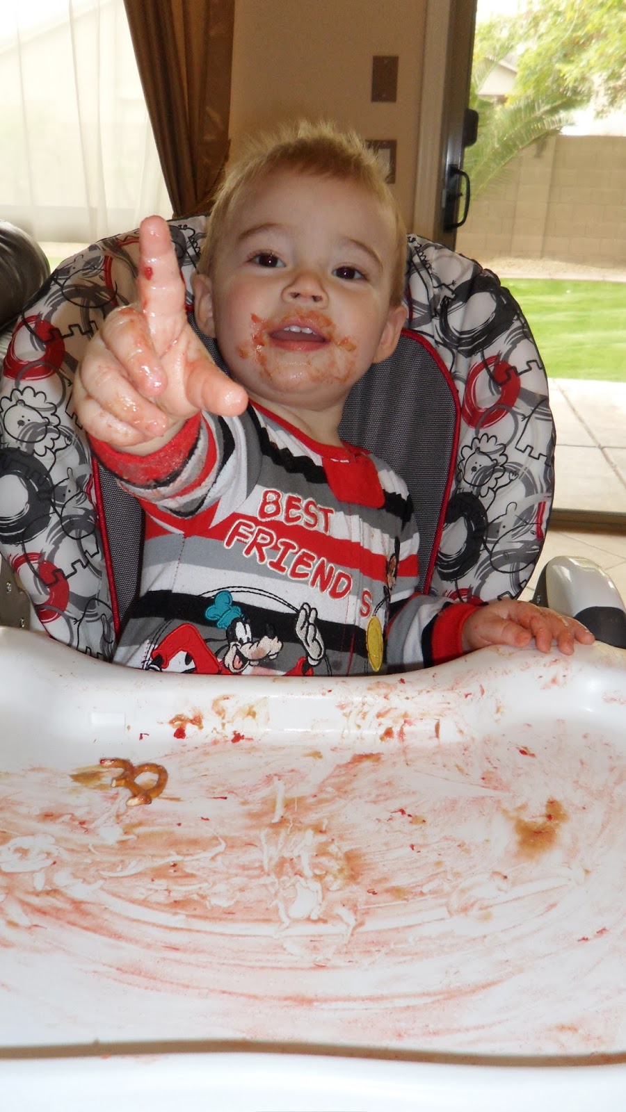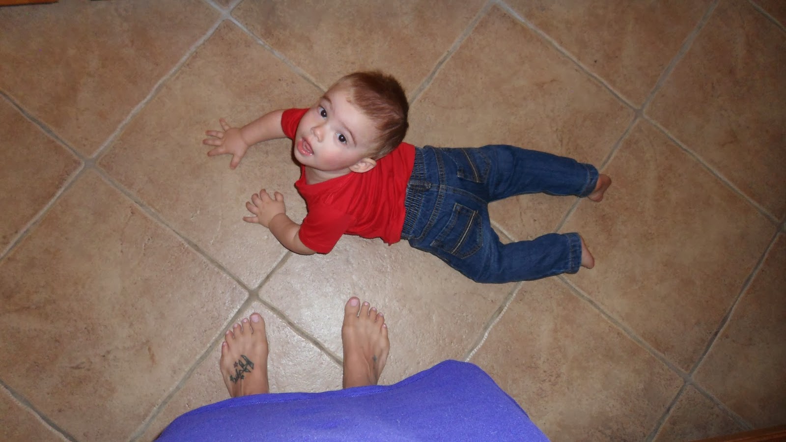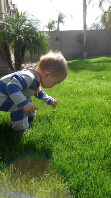 STATS: somewhere between 27 & 28 pounds depending on the time of day. He’s actually getting pretty lean in his face and arms. His whole body has just lengthened out but that belly bulges out by the end of every day which is very entertaining.