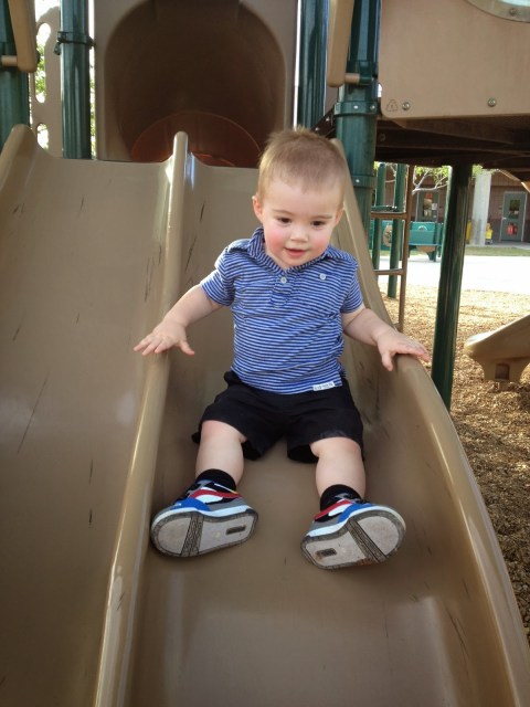 FAVORITE ACTIVITIES: playing outside. Walks to the park. Helping mommy in the kitchen. Hugs for Daddy, especially in the morning. Pulling stuff out of the fridge {very helpful this one}. He absolutely loves Running & climbing {you know dangerous boy stuff}.