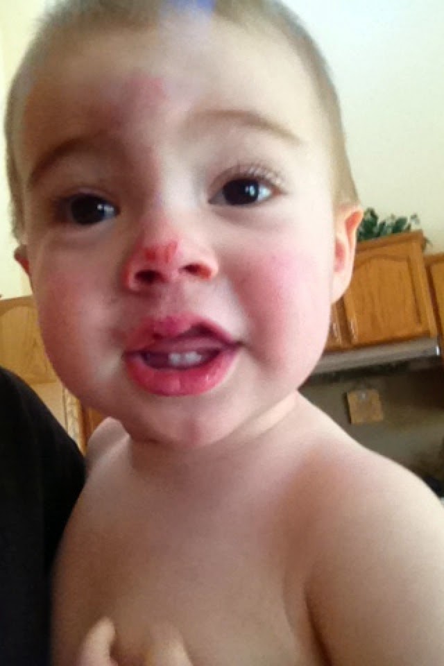 Luckily for me we have only had two major accidents with my crazy son (knock on wood)…. The first was when he was about 6-8months, Cortney was watching Aidan while I was in the other room. Aidan was pushing a stool around and it had gotten stuck in the crack he fell on the cross bar teeth first. There was so much blood we didn't know what to do… luckily it was a weekday we rushed to the dentist office who said “we can't help him he is too little you need to go five miles down the road and see them” we hurried down the road… blood everywhere, no screaming from Aidan, Cortney was in the back seat keeping him happy. When we arrived at the second dentist they were very helpful looked at his teeth. Only one was chipped and it hadn't been knocked too far up so he didn't end up with a dead black tooth for YEARS, so lucky because he didn't lose that tooth until recently (7years). We called it his shark tooth and the stool still has his tooth mark in it at my mom's house.