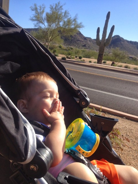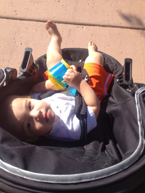 so I called up one of my closest friends to catch up for a few minutes. As we took our normal route it was gorgeous, sunny and lots of friendly faces were out and about. About 5 minutes into our phone conversation I came to the end of the sidewalk, where it was time to cross the street. Normally this street is 4 lanes and fairly busy but in the mid mornings it is pretty empty so the opportunity to cross is much more open. Taking my time I watched the firetruck leave the station for a call and saw no other cars so we took off across the street. I started a jog so that we didn’t dawdle and halfway across BAM. The stroller stopped flipped forward on it’s face (i.e. my kids face) and with a yell I flew forward. My knee hit hard and then hand to catch myself (which equals some serious shoulder pain, in hindsight I know how to fall better than that sheesh). Anyway, on some sort of adrenaline high I jumped up. Flipping the stroller upright I began assessing Cash’s injuries. His eyes focused on mine as he screamed, I quickly knew that he was just scrapped up and as scared as me in that moment. thank goodness. I unhooked him and hugged him close trying to comfort us both as I walked out of the road.