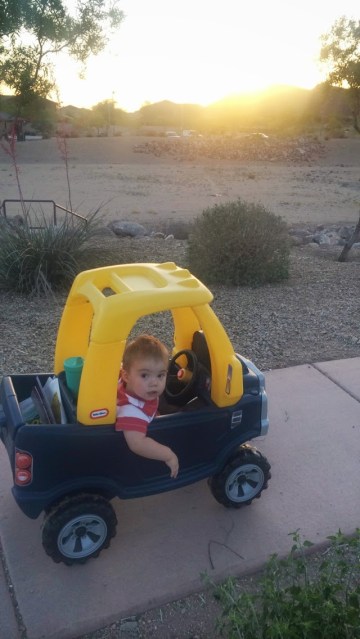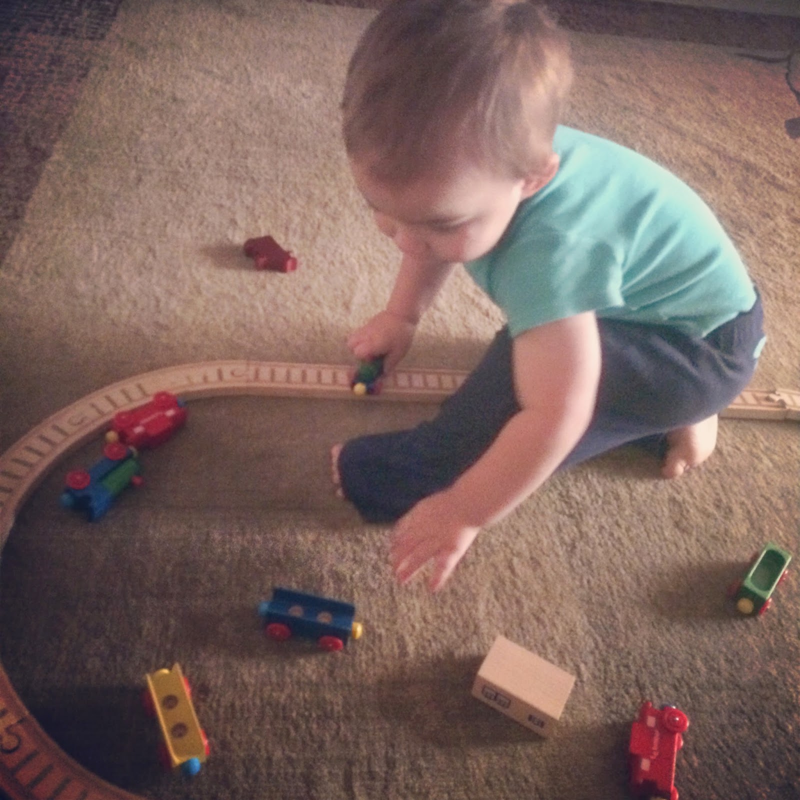 We went back to Mom & Dad’s for naps (ha) & playtime. He’s finally ready for all the toys Grammy-B saved from our childhood. Good thing Dad didn’t get his way when he wanted to get rid of the whole garage full of boxes huh mom {he he}