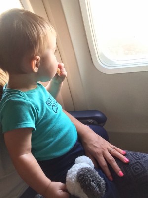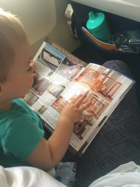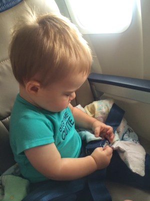 The flight there was really great. Early morning is where it’s at with this one. He relaxed. Ate breakfast. And then played with everything in site. Even accomplished some light reading 😉