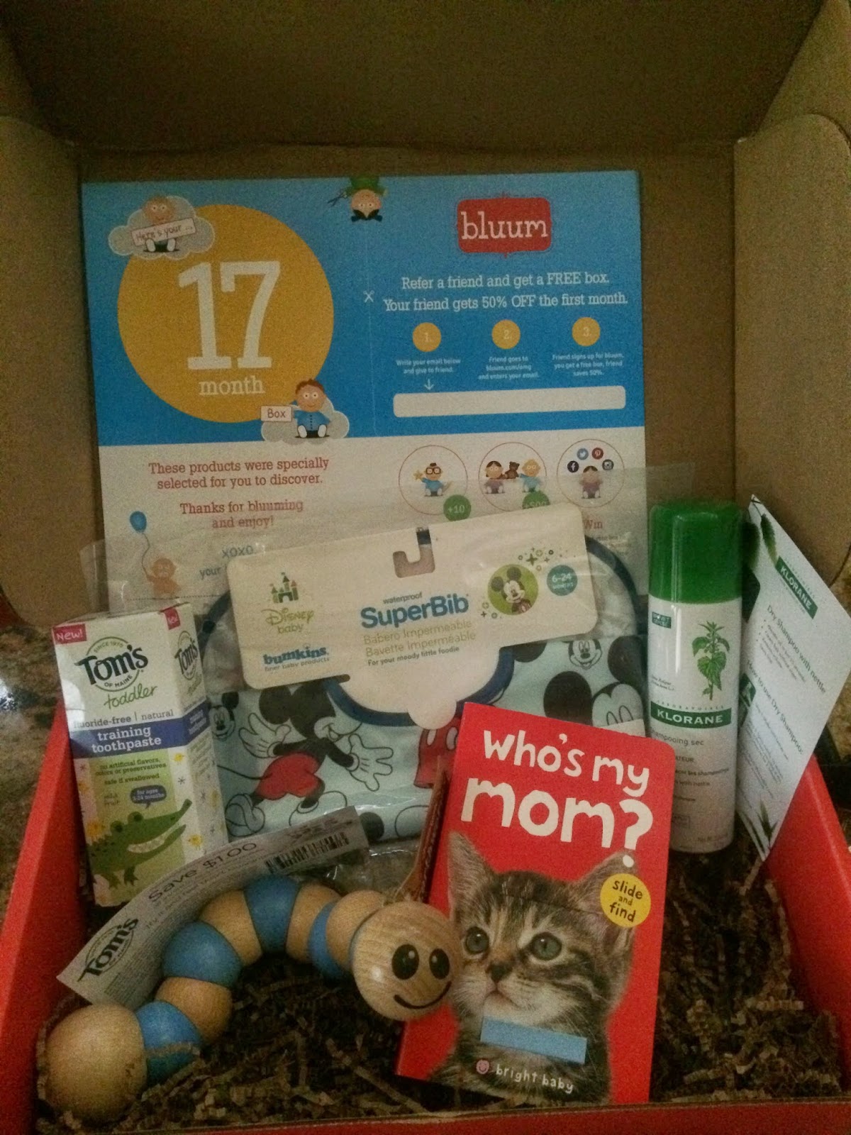 Cash absolutely loved the book, with the slide and find pages he’s able to interact with it, a discovering 16 month olds dream. The wooden worm is a hit but I’m not so much a fan, he’s in a throwing stage lately which doesn’t make my face or feet feel great when I’m not ready for things to come flying at me. The bruise on my foot proves my dislike of this wooden toy {mommy is paying extra attention now}. But that dry shampoo, Mommy can get behind… perfect for my non-hair washing days (i.e. 4 out of 7 days of the week lately). The Mickey bib is so darn cute, he’s in such a Mickey Mouse phase lately it’s hard to turn down any products with the characters printed on them. {well played Disney} We’re also excited to try the toothpaste. Brushing teeth is something Cash loves, well he really just loves to try to bite the toothbrush but at least we’re sort of forming the habit. As soon as our other tube is out, this one is in. BONUS: it’s all Natural