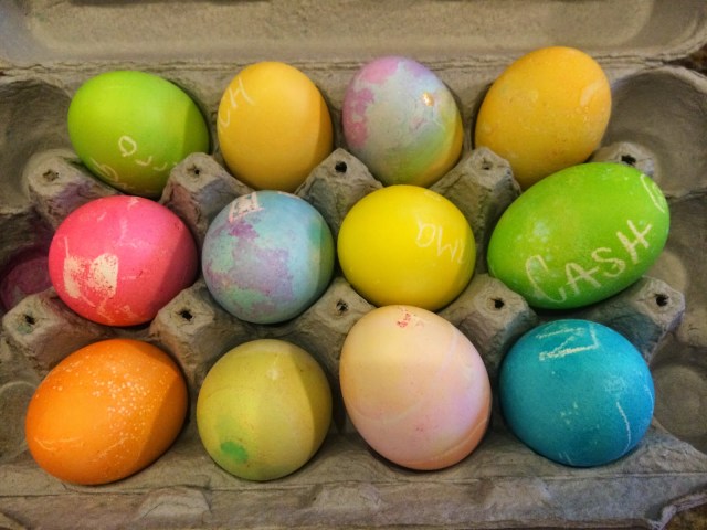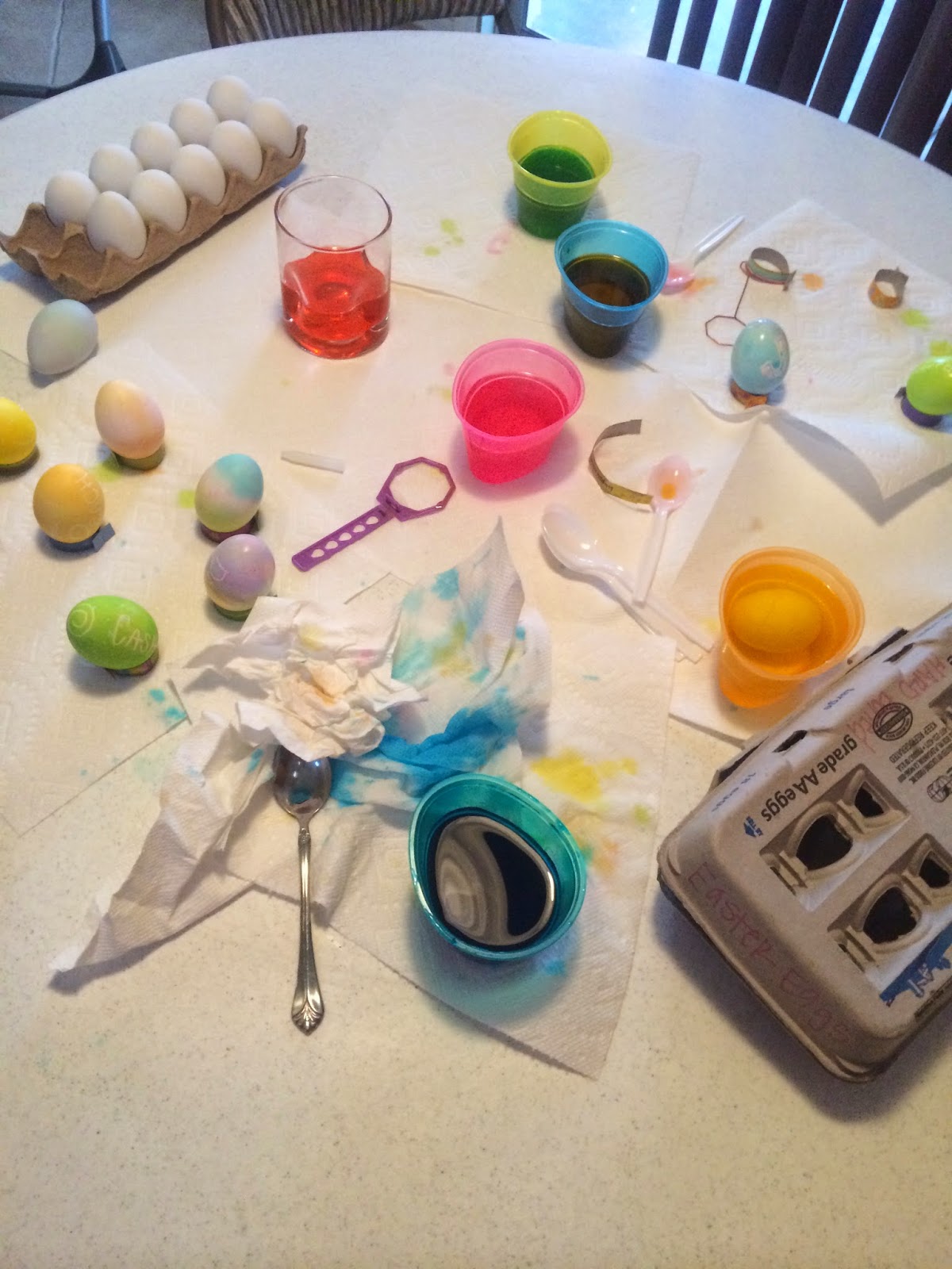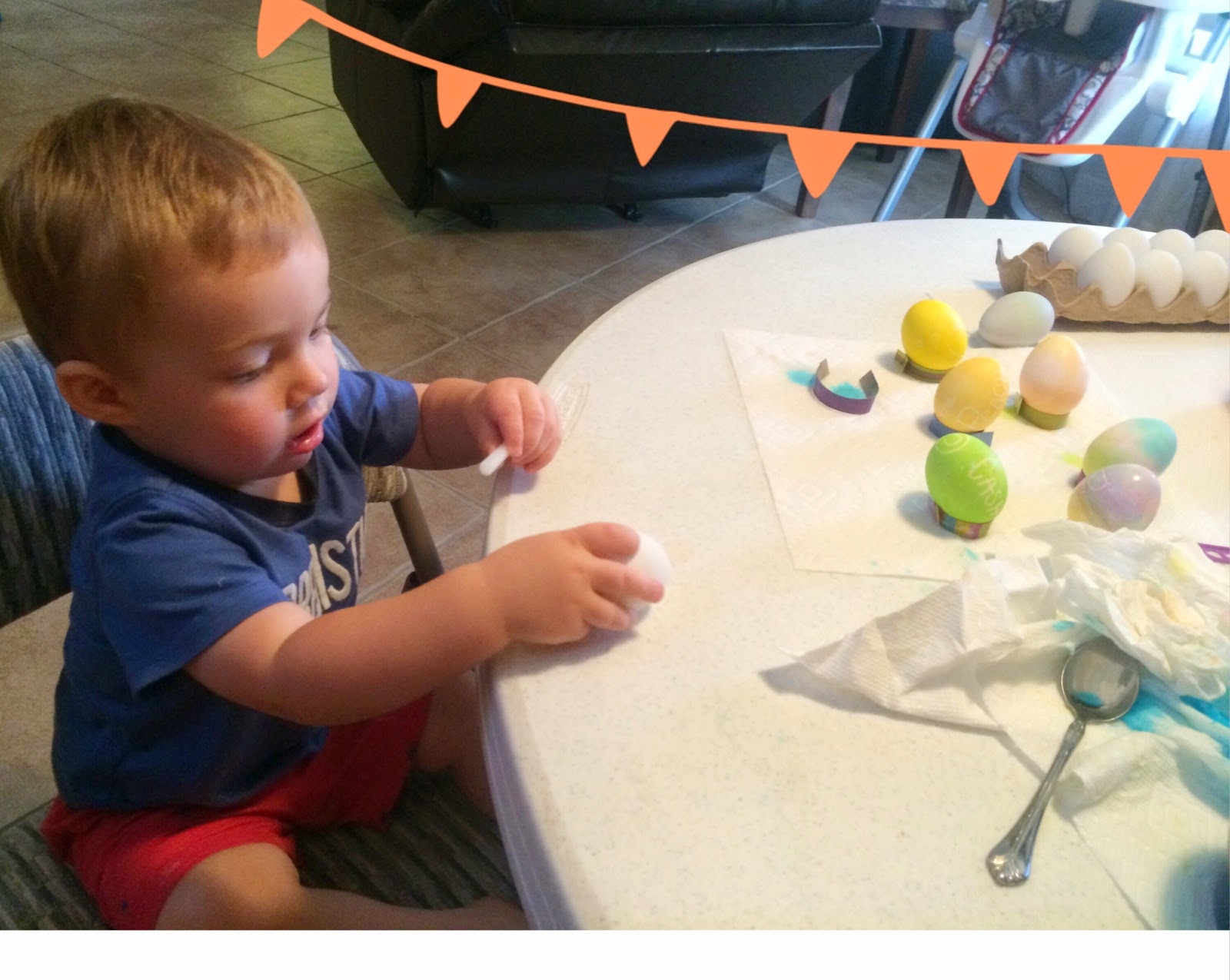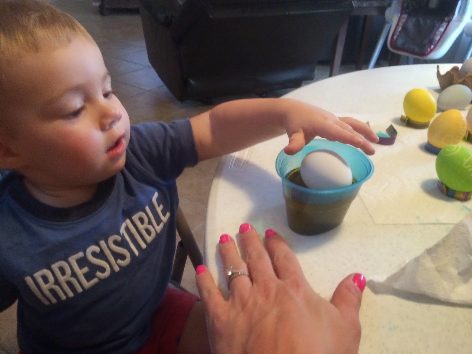 Later that evening we dyed our Easter Eggs. Had to wait for daddy to get home from his work trip. but we fit it in! Cash really got the hang of it quick, although I think he was disappointed we wouldn’t let him splash in the colored water.