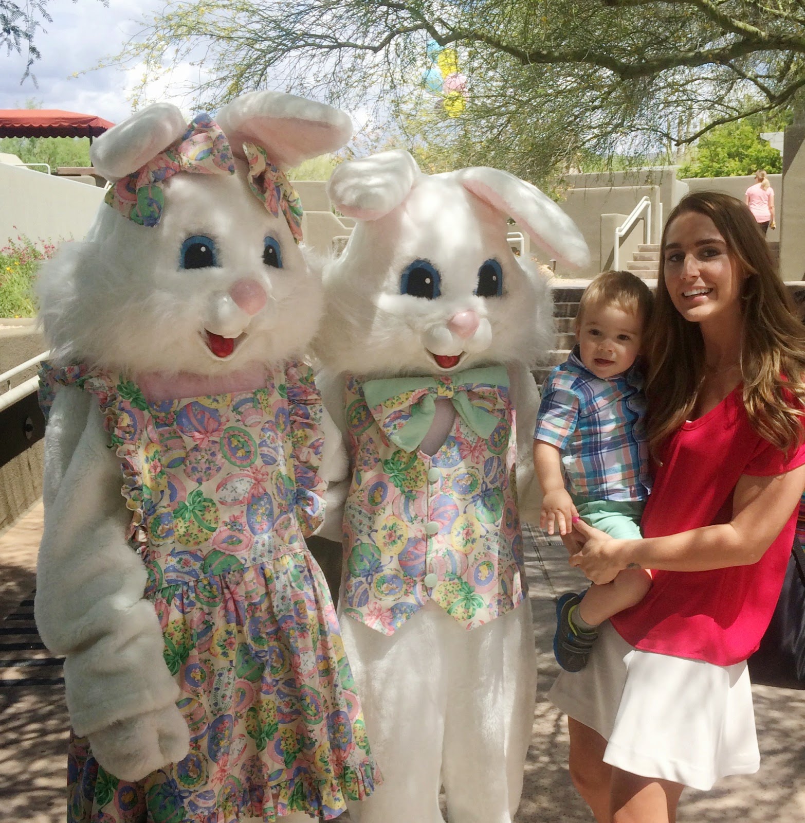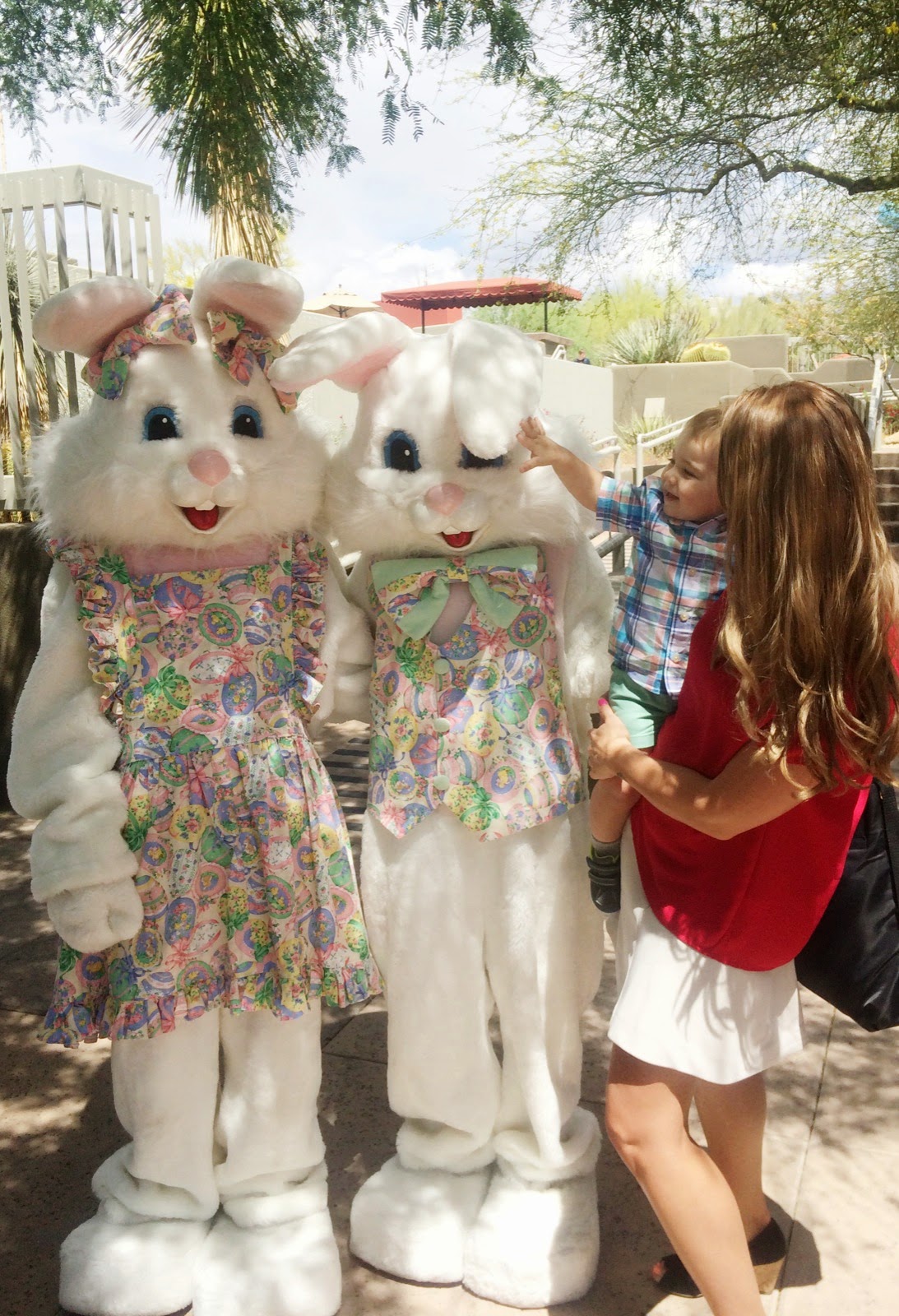 Saturday Morning we met up with GranWen & Grandpa for an Easter Bunny Brunch at Desert Mountain. Cash absolutely loved the bunnies! I was impressed with their cute outfits. Maybe next year he’ll stand with them or let them hold him. He was too much in awe to care about photos. 🙂