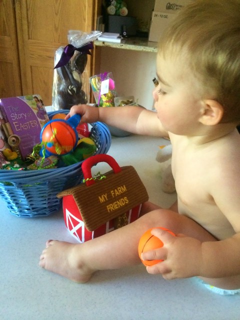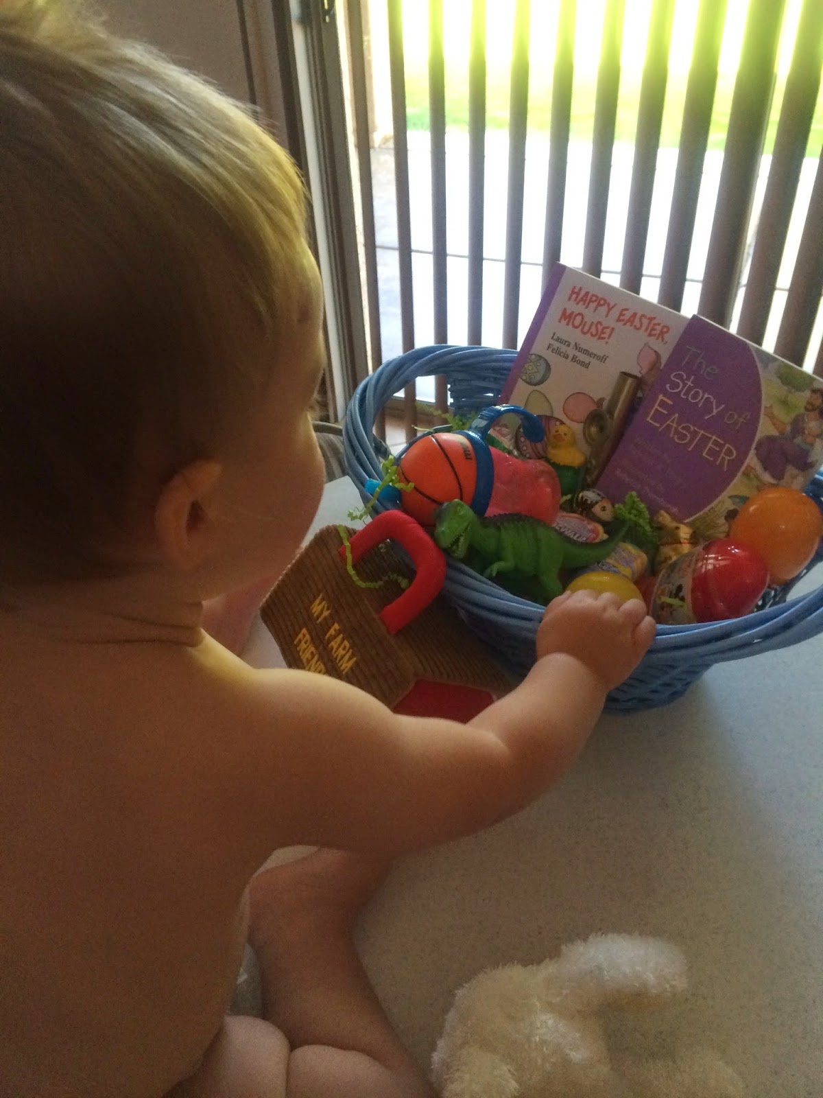 Easter Morning was lots of fun! Even though I had to work so we missed out on a few things we wanted to do. Cash was excited about the baskets and totally enjoyed his new book and marshmallow eggs.
