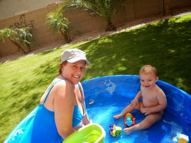 | it got a little hot so we stopped at the toy shop and played in the water. Mom- next year we’ll get him a toy there 🙂 |
