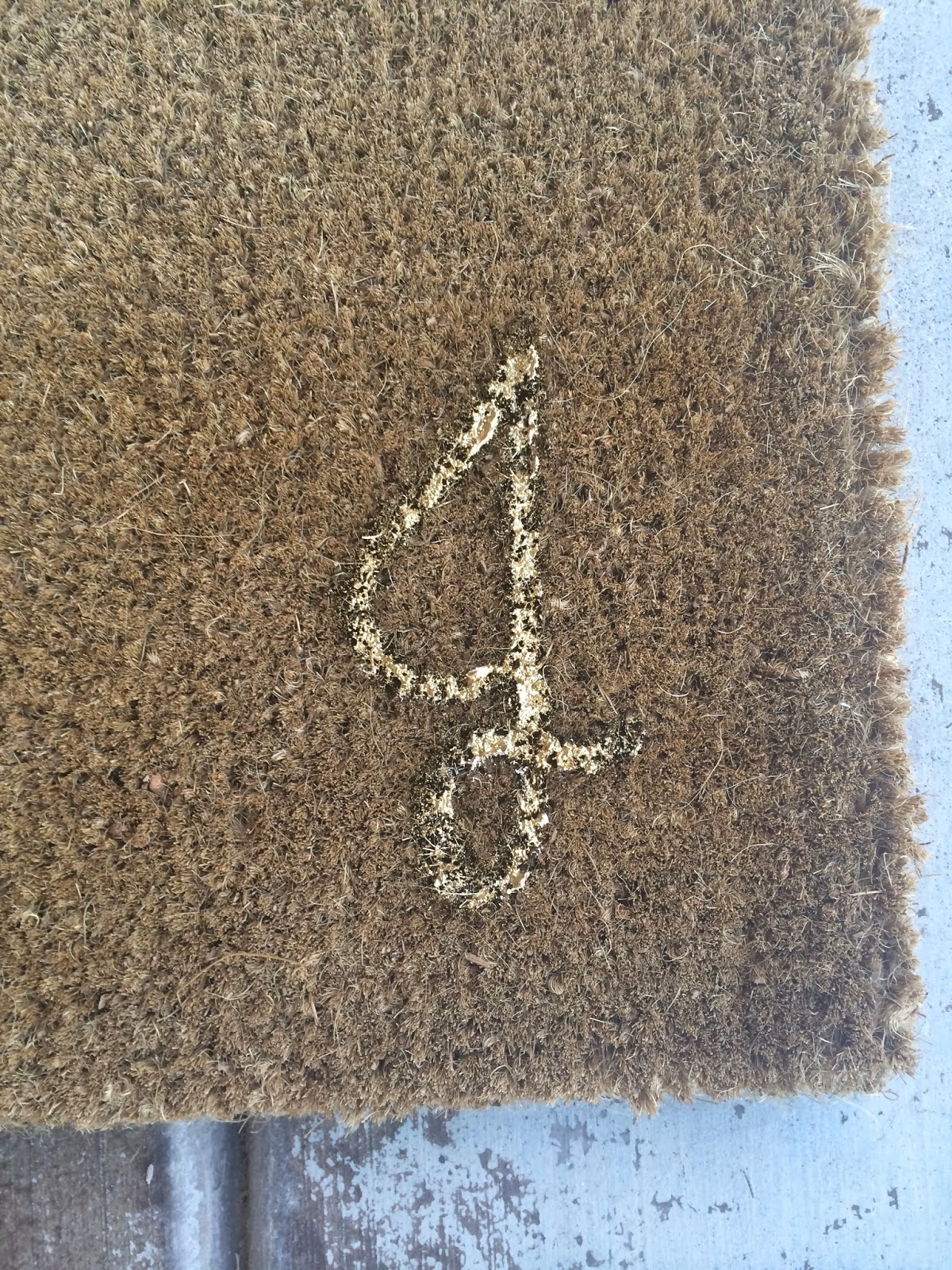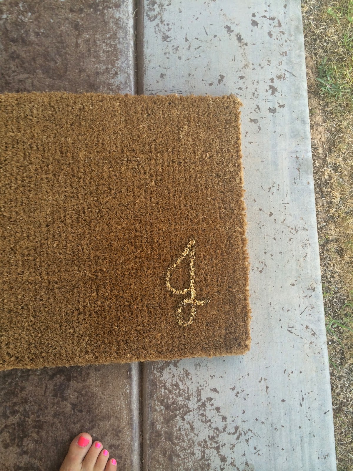 Now for the welcome mat. I’ve been searching for a cute one that fits our home. Of course my husband would love if I got a Seahawks one just so he can wipe his feet on it. But he wants to keep me around so that wont be happening any time soon. Sure I could just get the standard welcome or some cutesy saying but where’s the crafty in that? Instead I found a neat idea while web browsing/blog reading/pinteresting {clearly I’m not sure where I found it}. But it stuck in my head, I did pin it and I ordered a plain mat. Bed Bath & Beyond has them use your coupons and order it in the store for free shipping. Or get an even better deal at IKEA cause they have em too (only $9.99 seriously I wish I had seen it sooner)!