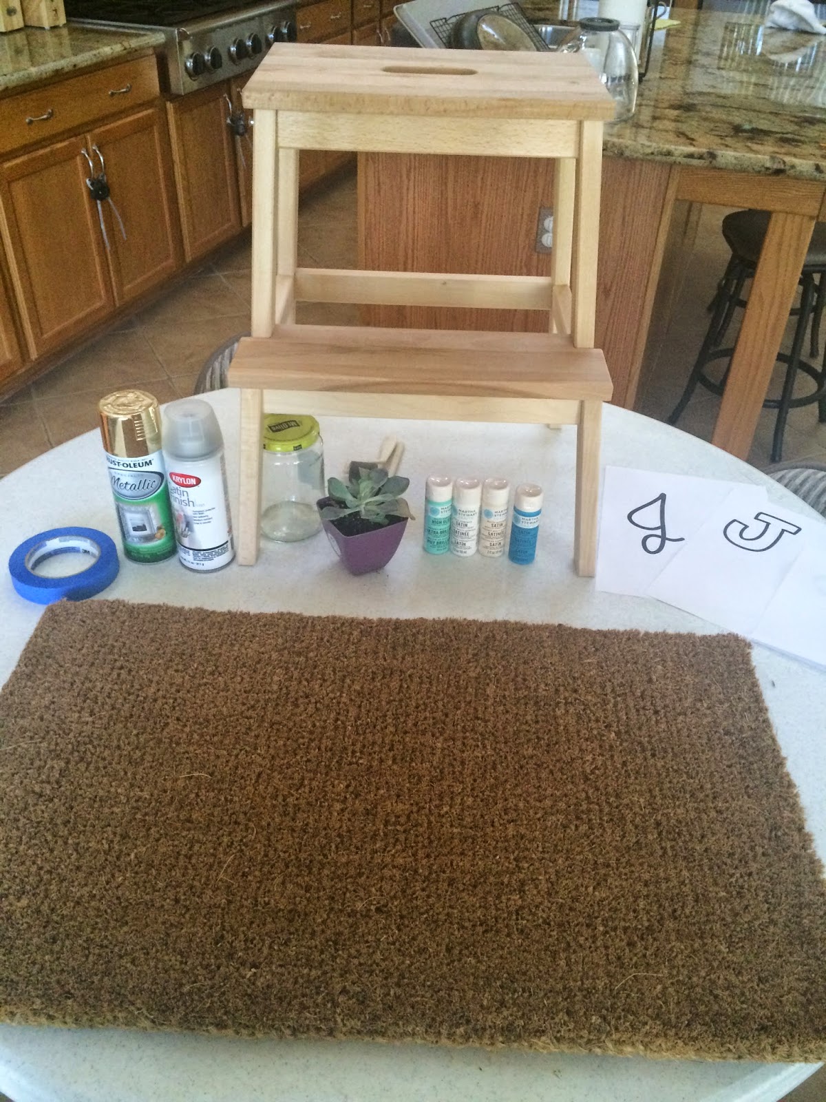 Of course once they were all put together, my concern was confirmed… the step stool is way too high for the bathroom. darn it. On the bright side it will be perfect in the kitchen when he’s just a little bit older. Now since this bad boy will be sitting in my kitchen (and it does look almost too plain) it seems necessary to add a little bit of a personal touch. you know i’m always down for a good project.