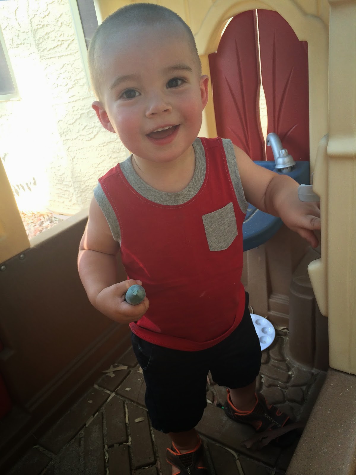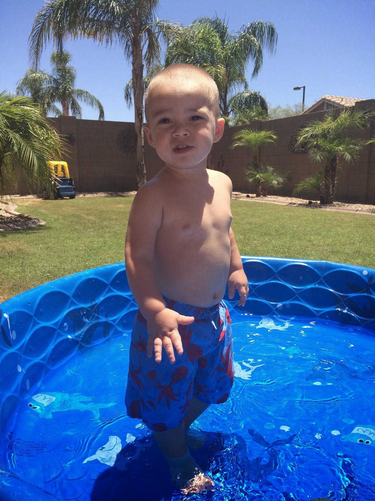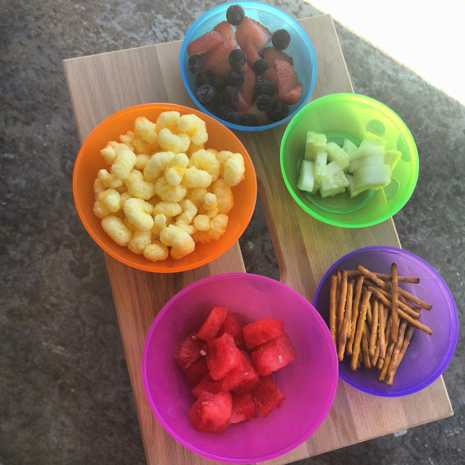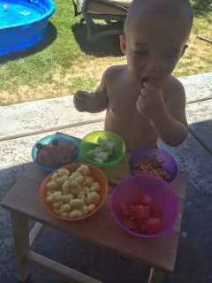 you can’t help but throw on swimsuits and fill up all the water holding toys to play outside in 106 degrees for an hour or two. We even managed to have lunch {or fun snacks, whatevs}