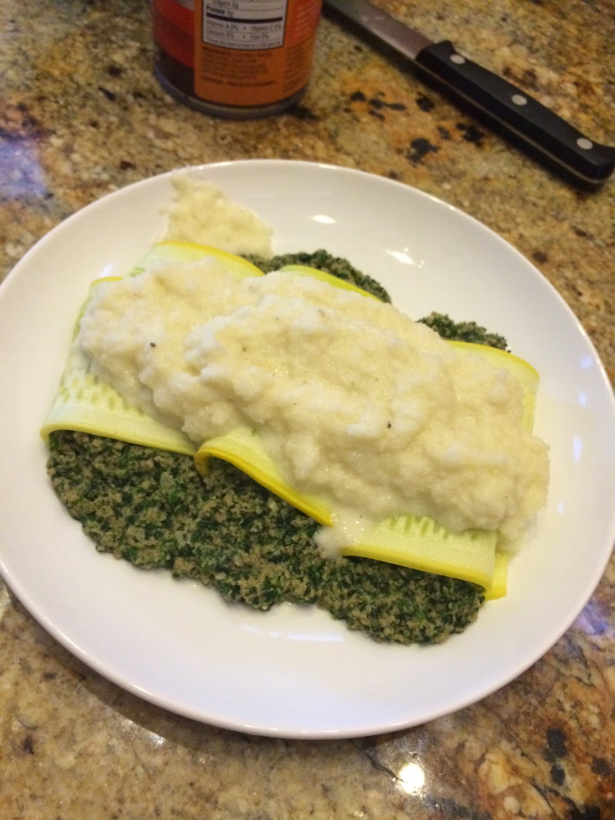 Yep, they were stuffed with a pesto, cheesy, ground chicken mix and bundled up. Then topped with a cauli-fredo sauce that actually tastes better than it’s cousin Alfredo sauce {no I’m not lying, but that could be my health conscious taste buds talking, just a warning} It certainly wasn’t the easiest, cleanest or quickest experiment but we pulled it off no problem. And talked through a few changes… so I’m here to share it with you!! I’m positive that your second attempt this will seem like a breeze!