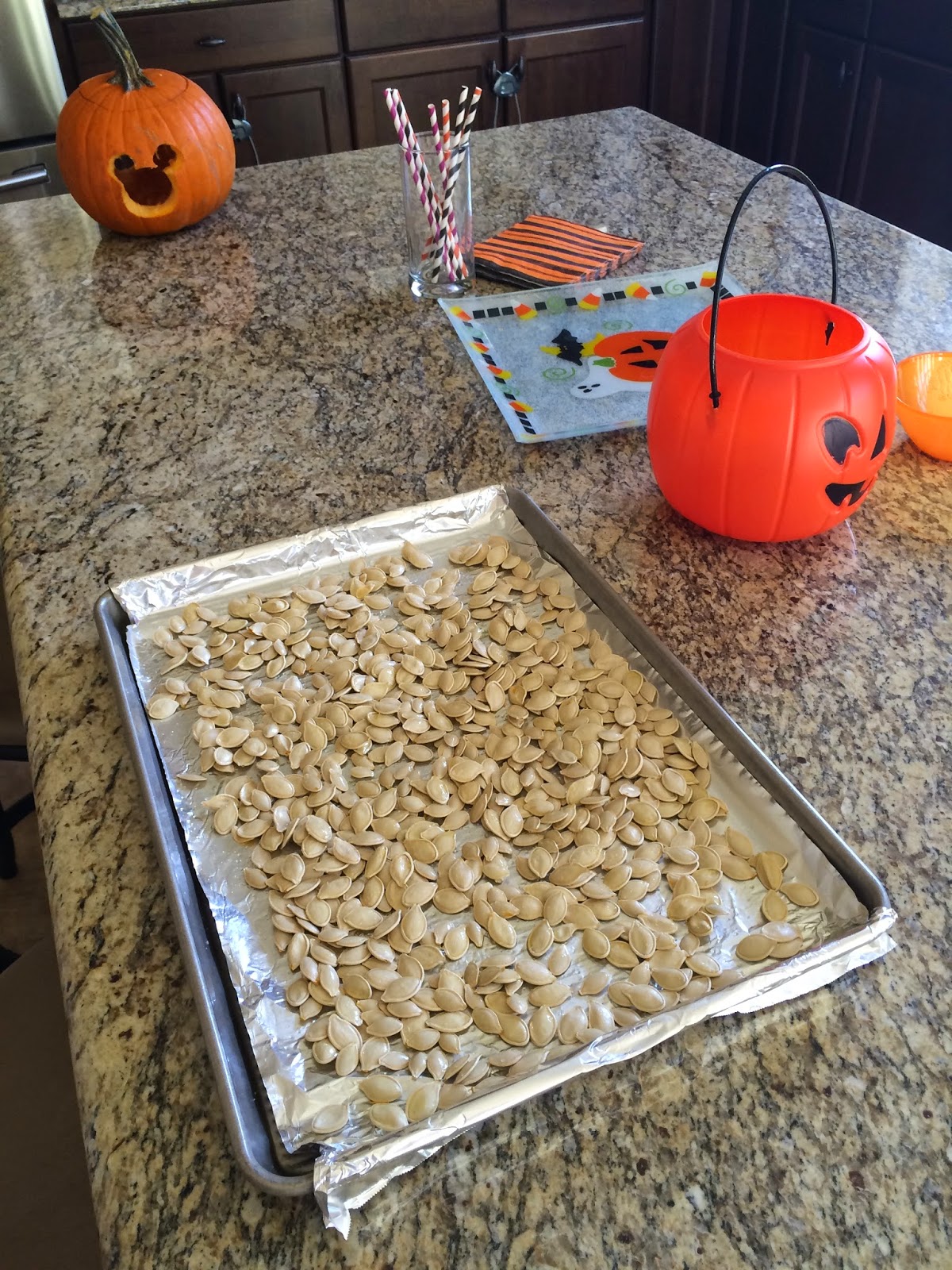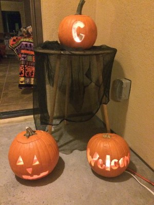 We managed to carve up 3 pumpkins last night. Even with a grumpy toddler.