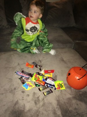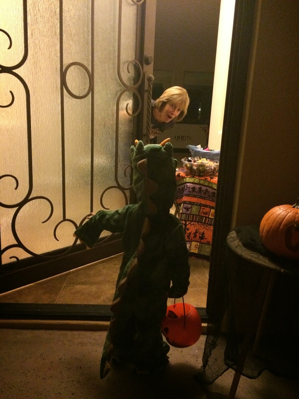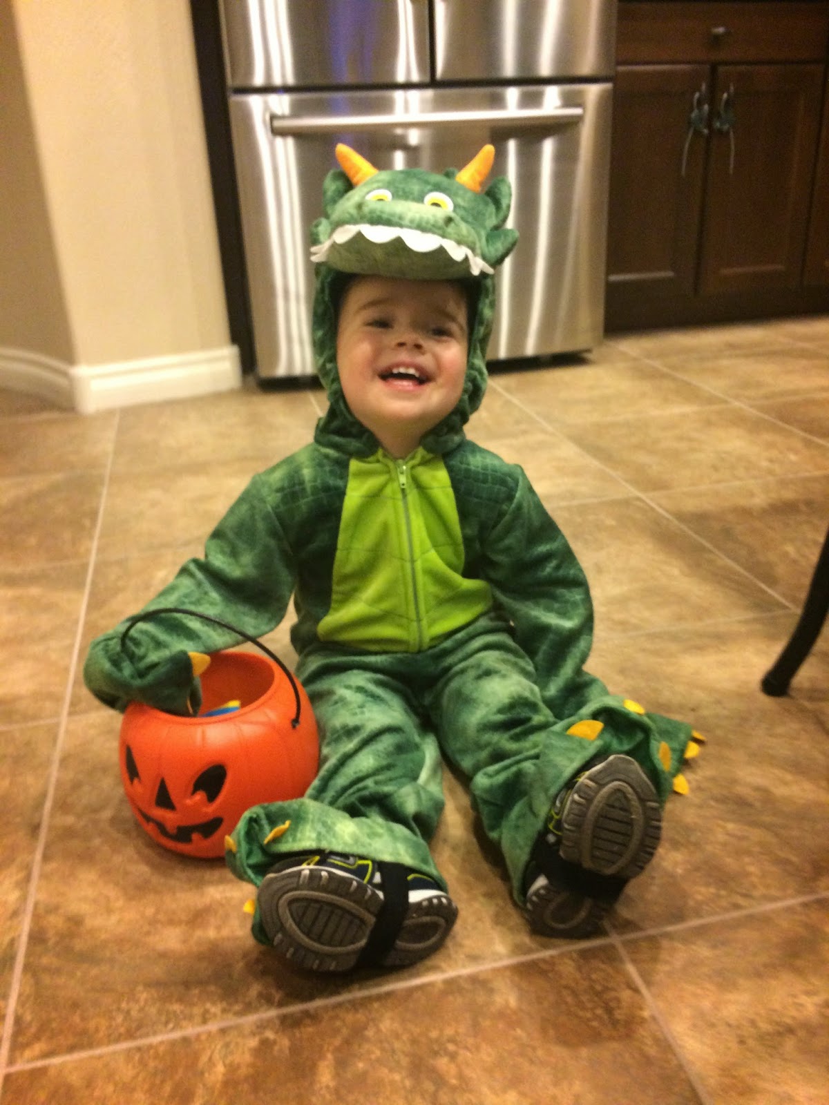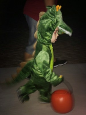 With a new block to trick or treat around. A ferociously cute dinosaur to Rawr all night long.