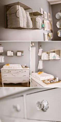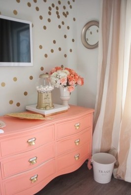 I seriously love this coral dresser with all of the gold accents.