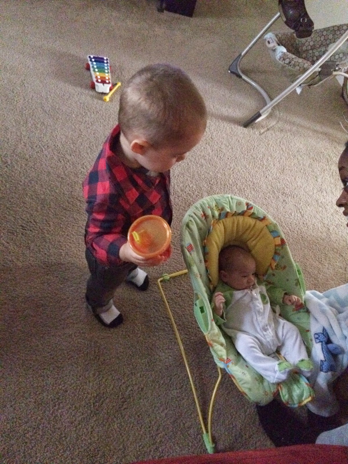 -Cash is officially jealous when Mommy pays more attention to babies, even if he was playing perfectly fine on his own and all of his needs had been previously attended to.