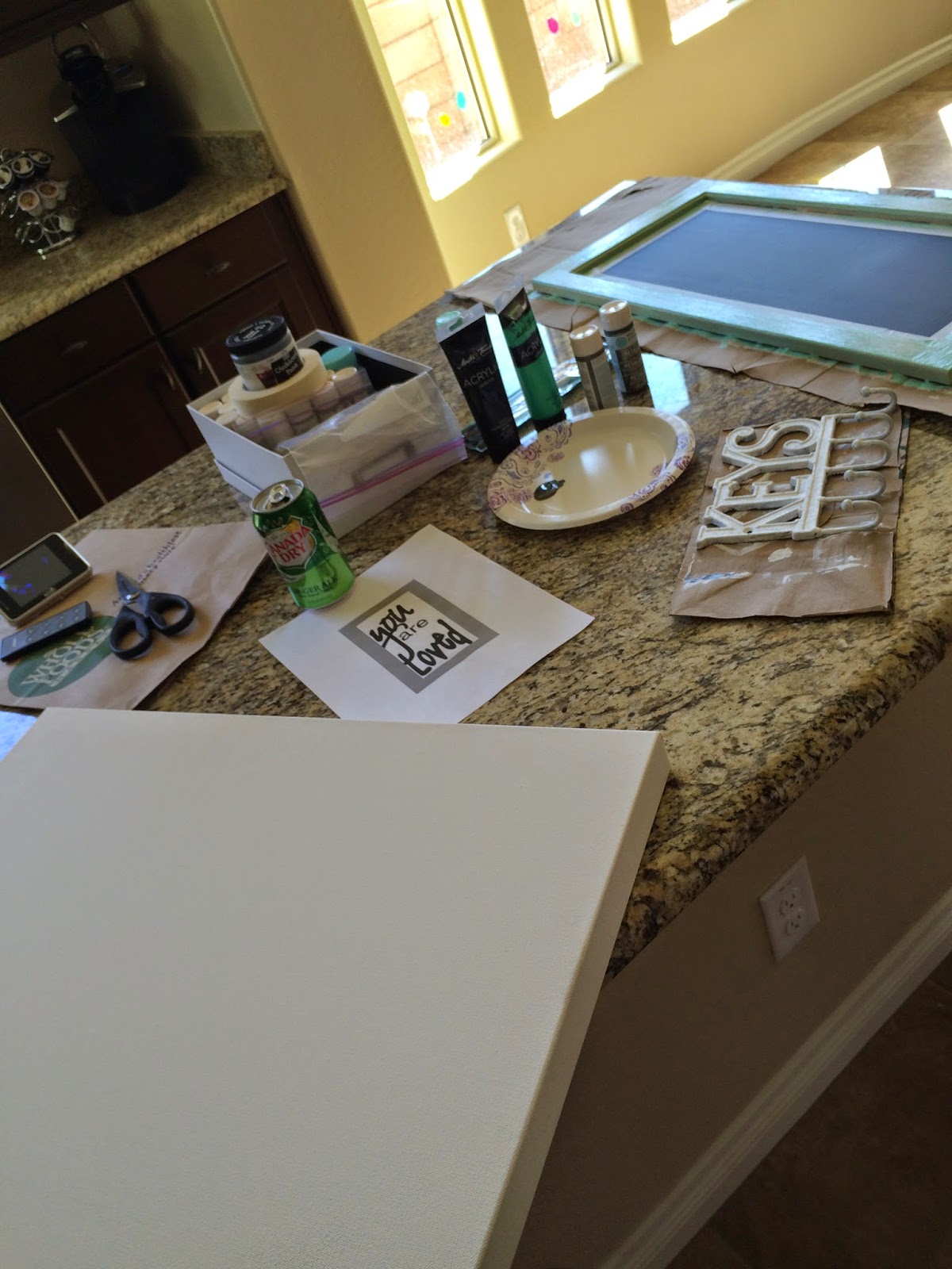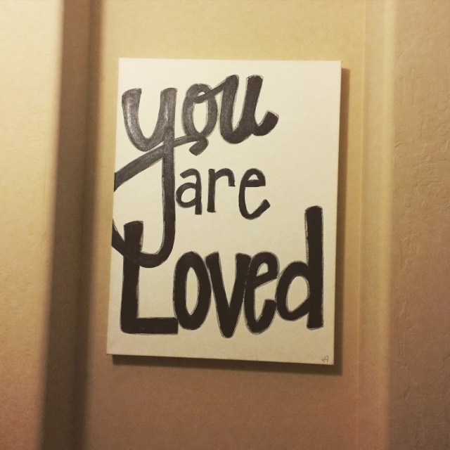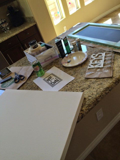 While it’s not perfect (I guess that’s why I should’ve paid 95), it turned out very cute and fits the space. I just wish I could fix 2 of the letters now that I see it every day. Who knows if Michaels does another canvas sale I may just try it again! {Maybe not though}