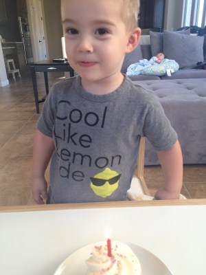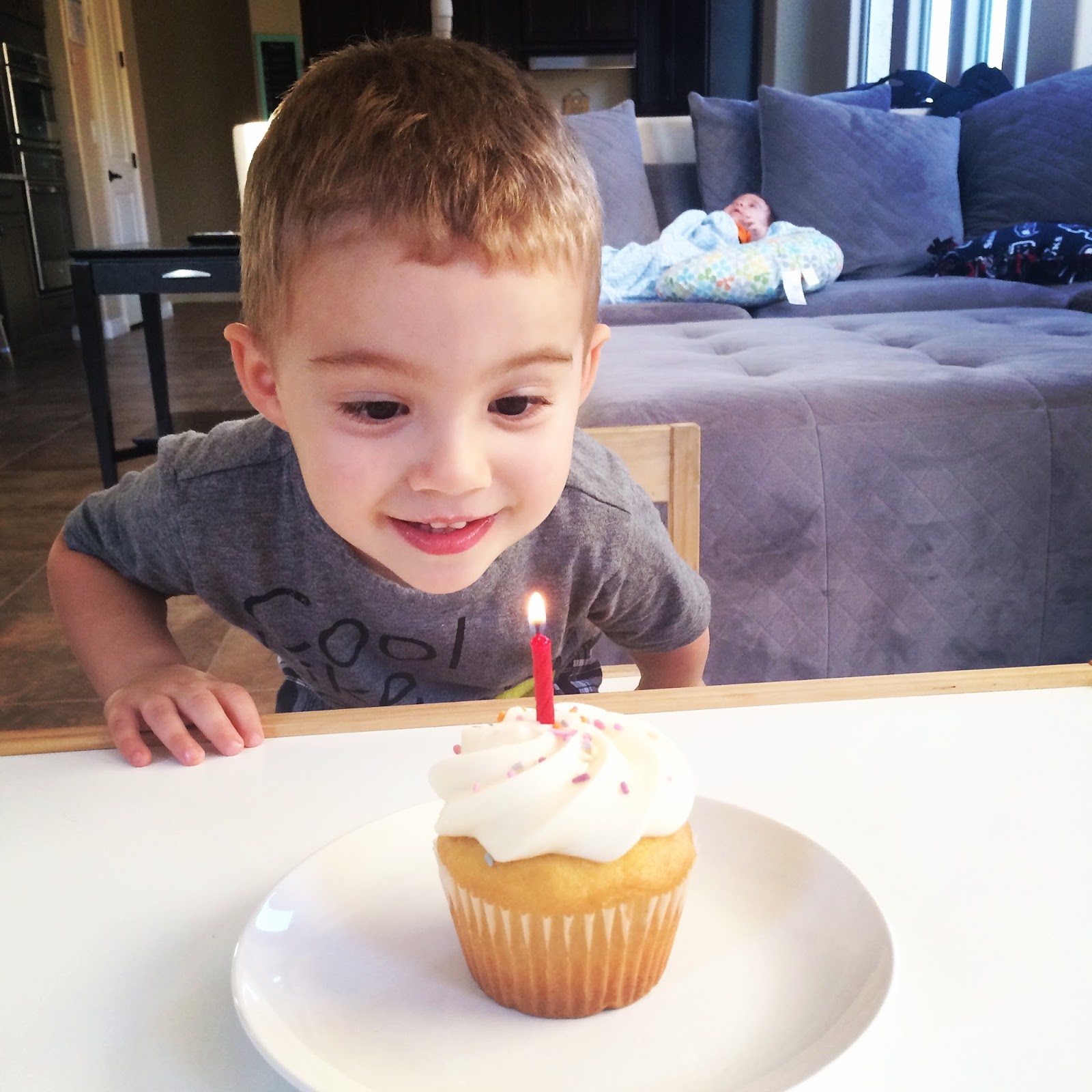 I figured we don’t need a full batch of cupcakes. Between me wanting to lose the baby weight and being the only adult around to handle a sugar crazy toddler, buying a couple singles is much safer for my waistline & sanity. Also, Cash picked pizza for dinner! & Who am I to turn him down today…