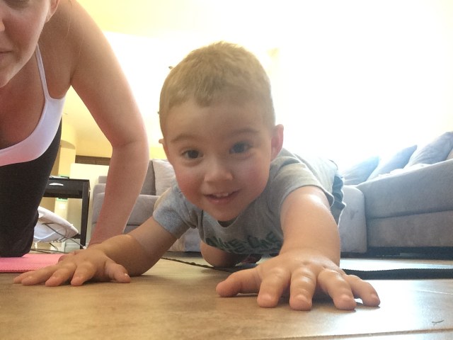 On mornings that I’m able to play outside with Cash and not have to hold Lucas. I put on some tennis shoes and do a few sprints, lunges, jump squats across our yard. Last week I went through 3 rounds of these. I was huffing & puffing like I just ran a marathon and Cash looked at me dead serious and said, ” now do push ups”. {insert crying/laughing emoji} Guess it’s never too early to motivate.