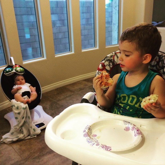 Both boys were pumped tonight!!! Poor Lucas just watched us all eat. A few more months (give or take 6) kid and you will be right there with big brother… a piece for each hand!!