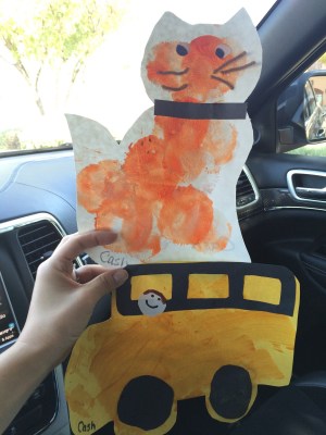 Judging by the fact that we’re averaging 2 pictures a week {in case you did the math that means they are creating art every single time he’s at preschool}, I just know we’re going to have so much this year! YES! I can officially create a rotating art wall in the playroom.