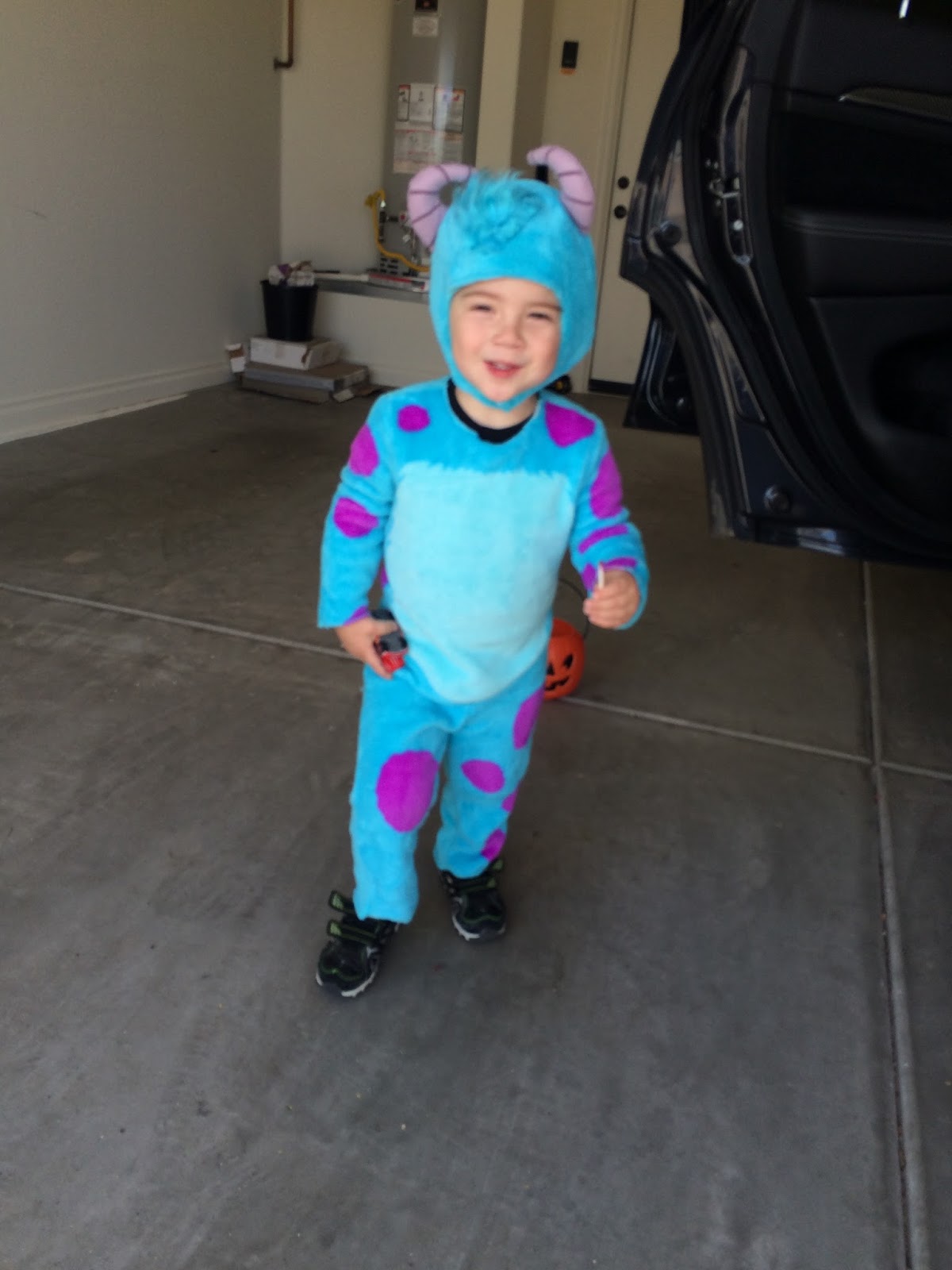 On Friday we tried a little trick or treating at preschool. Lots of tears until he saw candy & a dog.