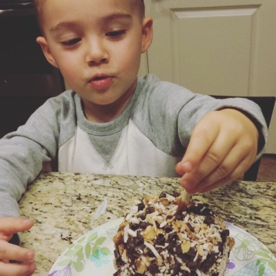 Yet he would watch Mickey’s Monster Musical on repeat all day if we let him. He also was totally behind the concept of Candy… all. month. long. {if we let him}.