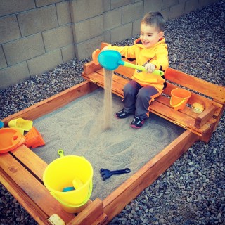 Cash is really excited he has his very own box of sand to play in! Especially since we took away his giant dirt playground by building a pool. {what horrible parents we are lol}