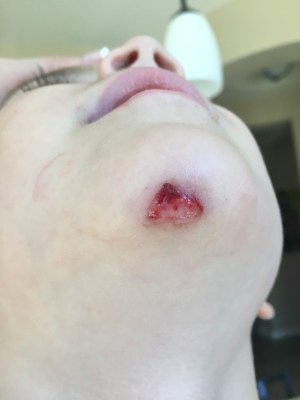 Cash has fallen from the stool at the island and split his chin open. Brad got the bleeding to stop but it’s pretty gross and he’s thinking possible stitches. great