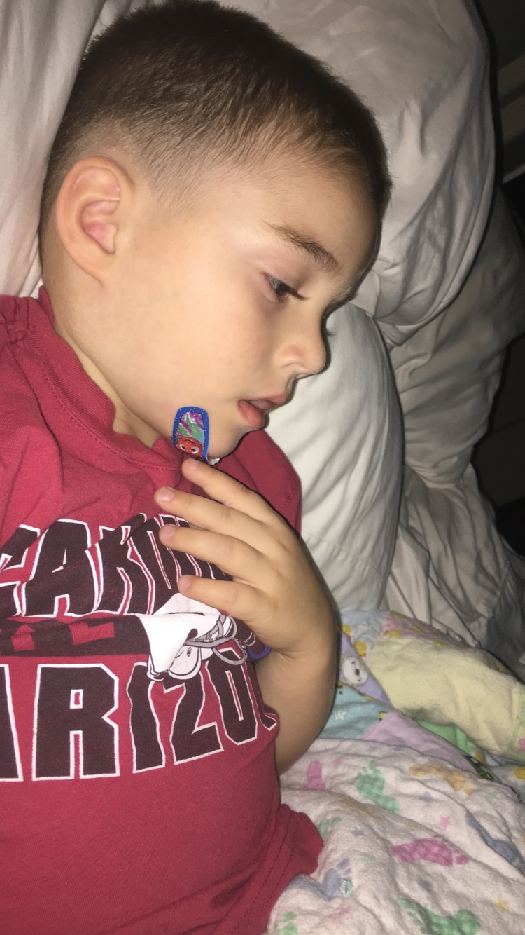 Last night Cash came to me to show me and ‘ouchie’ on the inside of his lip. It looked like a blister/canker sore. After baths I checked out the back of his throat and started to panic a bit.